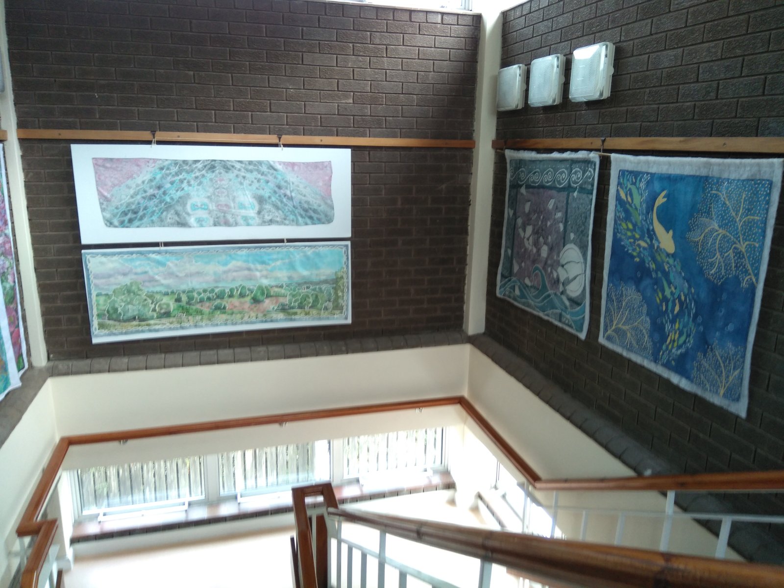 Teisipäeval, 28. jaanuaril 2020 (kuni 29.02) oli kokku lepitud, et panen oma näituse Kolga-Jaani Raamatukogus ülesse. Kogesin, see on kohalikele üks vajalik koht, kus kokku saada ja külaeluga sidet pidada. Ruum on väga kõrge ja laealuste akendega. Valgustid on laest allapoole toodud kogu laealust ruumi täitva raamistikuga. Seinad kaetud puiduga. Raamaturiiuleid täis ruum esitas mulle huvitava väljakutse.